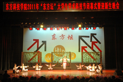 11月30日晚,东方科技学院2011年“东方坛”大学生学术科技节闭幕式暨迎新生晚会在校大礼堂隆重举行。校领导周清明、彭克勤、周仲文、学院董(监)事会成员、全体学院领导及相关部门负责人出席闭幕式,并与千余名师生一同观看了迎新生晚会。