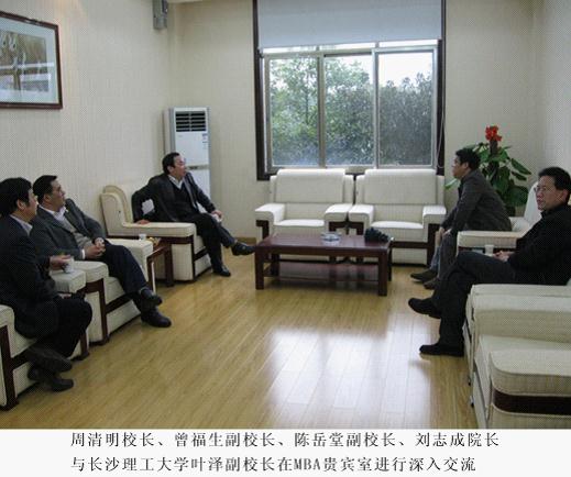 2月22日,春寒料峭,细雨霏霏,下午2点,校长周清明率领我校考察团专程赴长沙理工大学学习考察工商管理硕士(MBA)教育项目办学经验。考察团成员有副校长曾福生、陈岳堂、两办主任周贤君、研究生处处长贺建华、计财处处长徐琳、资产处处长欧阳中万、商学院院长刘志成、商学院党总支书记唐玉凤、资源环境学院院长段建南、人文学院副院长刘新春以及我校MBA教育中心工作人员等15人。考察团一行受到了长沙理工大学的热烈欢迎和热情接待。
