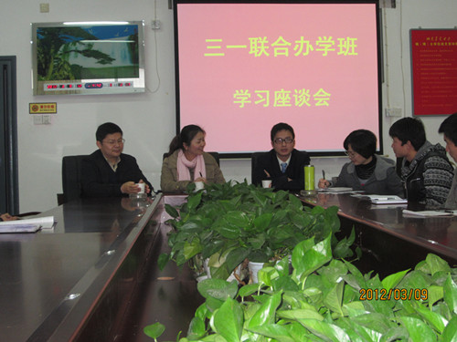 3月9日下午4点,工学院召开了三一联合办学班学习座谈会。会议由学生工作组首道老师主持。工学院党总支副书记裴虎、三一集团经营计划总部经理吴卫琴、人力资源部经理肖斯鹏以及工学院三一班全体学员参加了本次会议。