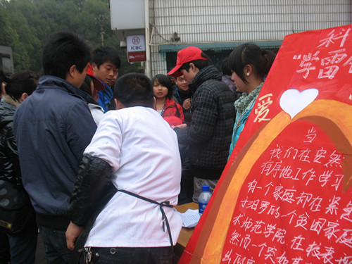 拳拳爱心点燃希望之光,片片真情托起明日朝阳,3月28日中午,科技师范学院全体师生在芷兰二食堂为一位患有先天性心脏病的同学举行募捐活动。全校同学纷纷慷慨解囊,捐款相助,掀起了一阵爱的龙卷风。