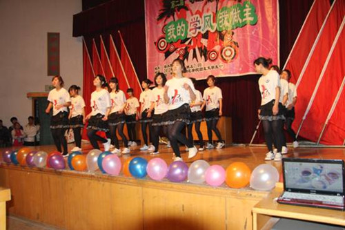 在决赛现场,各个团支部的表演形式不拘一格,结合各班专业特色,围绕“我的学风我做主”主题,采用DV秀与现场表演形式充分展示了班级的学风建设,呈现一场视觉与艺术的盛宴。整齐一致的舞蹈、扣人心弦的情节、创新的表演,充分展现了全院同学的上进与坚持、求实与创新,体现了师范学子们团结、和谐并不断创新的精神。其中,2011级心理二班《我的舞台》情节跌宕起伏、感情真挚、舞蹈灵活多变、刚劲有力,赢得观众阵阵掌声,并荣获本次比赛冠军。