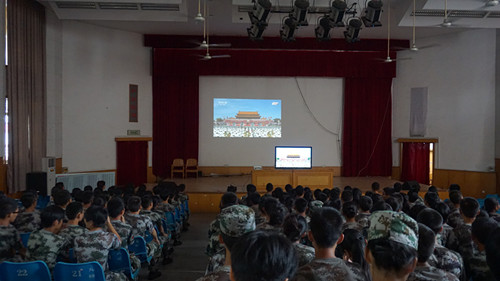 上午9点半,各学院学生代表,校纠察队、校文明督导队、校思政会学生干部,继续教育学院新生准时赶到集中观看场所,在解放军千人合唱团现场演唱抗战主题歌曲时,同学们自发地随着合唱团旋律放声高歌。10点,阅兵式正式开始,习近平主席检阅气势恢宏的受阅队伍,受阅官兵们喊着响彻云霄的“为人民服务”口号,将军们带领威武雄壮、整齐划一的方阵队伍经过天安门广场。看着三军列阵,铁甲生辉,战鹰呼啸,壮志凌云,同学们情不自禁地为我国国防实力迅猛增强鼓掌叫好,内心激动溢于言表,为祖国的繁荣昌盛感到无比自豪。