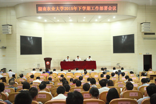 在对下学期重点工作作全面部署时,符少辉强调,人才培养是大学的基本功能,人才培养质量是大学的生命线,一定要把立德树人放在人才培养的首要位置。要进一步加强大学生的“三观”教育,大力开展专业教育,真正培养一批学农爱农扎根于农的大学生。要进一步加强教育教学改革,建立起适应管、办、评分离的自主办学模式,正确处理农学学科的特色优势与多学科协调发展的关系,进一步做好专业调整和发展的顶层设计。他指出,要持续推进“2011”项目建设,争取在推动南方稻田粮油生产方面有所作为。要高度重视基础研究,紧紧抓住国家科学体制改革的机遇,积极参与科技部、农业部牵头的重大项目,加快提升科技创新能力。要进一步推动学科建设有序发展和学位点动态调整,真正做到有所为有所不为。要认真做好新一轮的定编核编工作,规范临时用工行为,加大教职员工收入总量,通过机制微调进一步实现分配的合理化。符少辉校长还就财务管理、资产管理、平安校园建设、后勤改革、党建和思想政治工作等方面的工作作出了部署和安排。