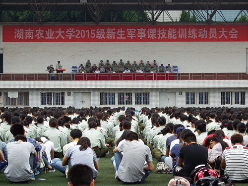 我校举行2015级新生军事课技能训练动员大会(组图)