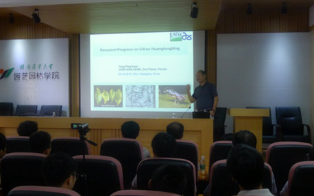 美国农业部佛罗里达州园艺实验室首席科学家段永平博士来我校讲学(图)