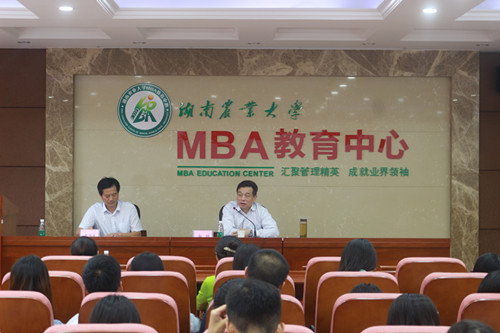 本网讯(商学院 李文涛)9月19日下午,第53期商贸论坛在我校十教北503教室举行,湖南农业委员会党组成员、副主任余雄作了题为“农业面临的形势与加快转变农业发展方式”的讲座。讲座由齐绍武副校长主持。商学院党委李阿利书记出席。教师、研究生、本科生代表参加了讲座。