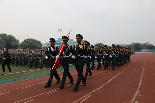 本网讯(人武部 雷志敏 刘亦玲)9月18日清晨,我校万余名学生齐聚东田径场,参加纪念抗日战争胜利70周年升国旗仪式。校领导、各职能部门和学院负责人、军训教官、学生代表参加仪式。升旗仪式由符少辉校长主持。