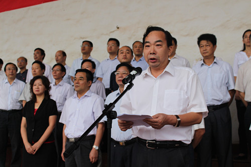 校党委书记周清明发表讲话,他与在场的师生一起回顾了近代中国为世界反法西斯战争胜利做出的重大贡献及在中取得巨大胜利。他指出,我们对中国人民抗日战争暨反法西斯战争最好的纪念就是牢记历史教训,牢记心中使命,牢记国家重托。他希望同学们牢记农大校训,能够铭记历史,勤奋学习,努力工作,弘扬伟大的爱国主义精神,弘扬伟大的抗战精神,为实现中华民族伟大复兴的中国梦而努力奋斗。