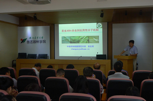 张友军研究员作题为“昆虫对Bt杀虫剂的抗病性分子机制”的学术报告