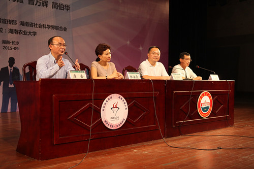 本网讯(新闻中心 王薇薇 庹炼)9月24日,由省委宣传部、省社会科学界联合会主办,我校承办的湖湘大学堂·企业家讲坛以“创业梦想·成功人生”为主题在大礼堂成功开讲。活动邀请了楚天科技股份有限公司董事长兼总裁唐岳、步步高投资集团董事长张海霞、长沙景嘉微电子股份有限公司董事长曾万辉、湖南省怡清源茶业有限公司董事长简伯华等4位全省创新创业先进典型联袂主讲,用他们励志、曲折的创业故事点燃了农大学子的创业激情。省社科联党组成员、副主席、湖湘大学堂组委会副主任黄建华,我校党委副书记卢向阳,省委宣传部理论处处长殷晓元出席。省社科界专家学者、我校师生代表、中央驻湘和省内媒体逾1000人参加报告会。