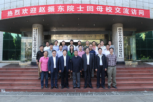 周清明书记代表学校党委、行政对赵振东院士回母校交流访问并积极投入母校的教学科研工作表示热烈欢迎和诚挚地感谢,并对赵振东院士潜心科研的精神进行了高度评价。周清明书记表示,有赵振东院士的加盟,学校的各项事业一定能得到更好的发展。仪式结束后,赵振东院士和与会校领导、相关职能处室负责人、农学院院领导和老师愉快地在一起合影留念。