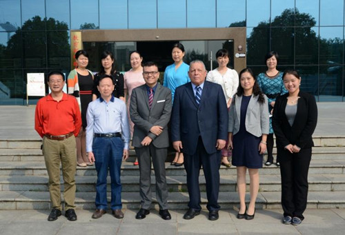 委内瑞拉使馆安赫尔·雷亚尔参赞一行与我校图书馆和国际交流合作处老师合影