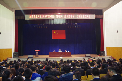 本网讯(学工部 胡喜海)10月28日晚,湖南农业大学大学生思想政治教育会、学生文明督导队、勤工助学会、心理健康教育会成立大会在大礼堂举行。学生工作部戴荣四部长、欧阳长安副部长出席了本次大会。学工部全体老师,各校、院学生组织代表,新一届“四大校级学生组织”全体成员参加了会议。会议由学工部林丽娅副部长主持。