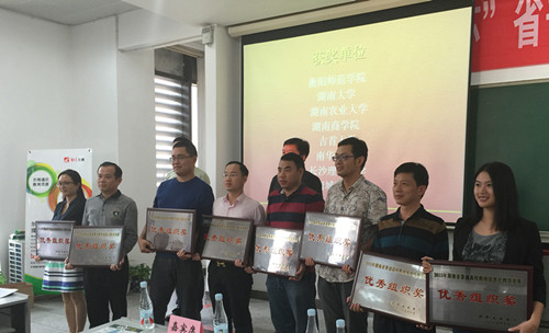 本网讯(教务处教育技术中心 谷永红)10月25日,2015 年度湖南省普通高校教师信息化教学竞赛决赛在湖南大学落下帷幕,经初赛、复赛和现场决赛,全省共评选出一等奖20名,二等奖29名,三等奖28名。其中,我校荣获一等奖作品3项,分别是周晨老师的《风景园林设计》、高志鹏老师的《水产微生物学》、沈维军老师的《“畜禽生产”》仿真实验教学;获二等奖作品3项,分别是聂笑一老师的《web设计与编程导论》、李巧云的《植物学》、唐文源的《客户关系管理》;学校荣获优秀组织奖。