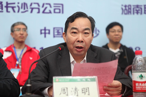湖南省乒乓球羽毛球运动管理中心主任唐辉发表讲话