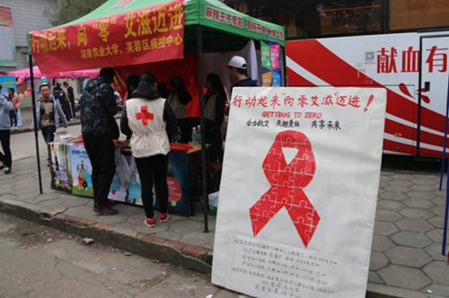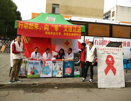 本网讯(校医院 刘存根 文杰)12月1日,由湖南农业大学医院主办,校青年志愿者协会、红十字协会、自行车协会协办的“世界艾滋病日”宣传周活动正式启动。