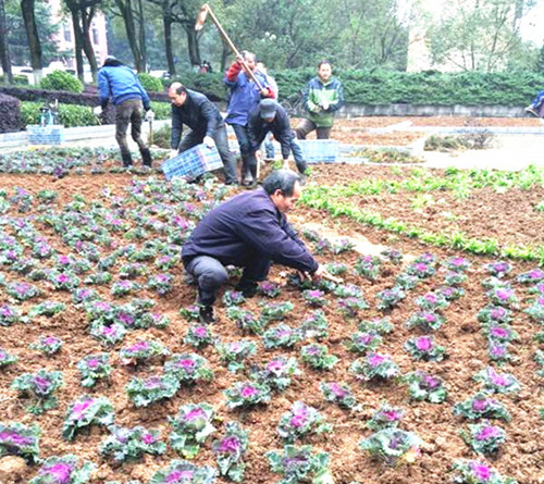 本网讯(后勤服务集团 吴娇)冬意愈浓,校园内的植物饱受严寒考验,部分季节性、移栽性花卉开始出现不同程度的枯萎、凋谢现象。为了不影响整体绿化景观效果,后勤服务集团绿化保洁中心的工作人员已然拉开了“补色”寒冷季的步伐,对校园内各花坛、广场的花卉进行逐步更换。