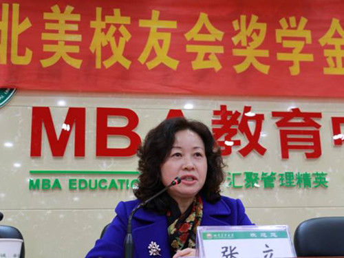会上,王爱兵副会长宣读了第十一届北美校友会奖学金获得者名单。与会领导为五位获奖学生颁奖。商学院2013级ACCA三班李颖同学作为获奖学生代表发言。