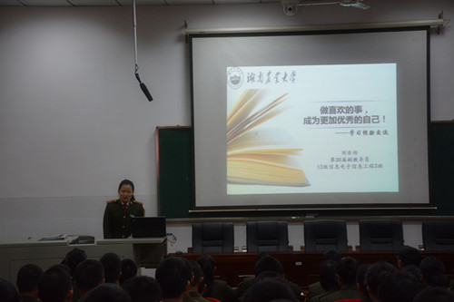 27日上午,学生纠察队副教导员刘亦玲和直属队委张译文进行了学习交流演讲,与第三十届队员分享了学习方法及经验。武装部部长欧阳长安在总结中强调了学生纠察以学生为本的理念,鞭策纠察队员积极主动落实学业。