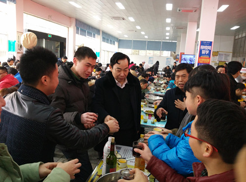 本网讯(学工部 邹晓卓)农历小年(2月2日)中午十二点,芷兰学生食堂暖意融融,我校2016年留守学生新春团拜会在此举行。校党委书记周清明教授、校长符少辉教授,党委副书记卢向阳教授,副校长陈冬林教授、陈岳堂教授、邹冬生教授、段美娟教授,正校级督导彭克勤教授,校长助理贺建华教授、周贤君教授等校领导以及各相关职能处室负责人、各学院党委副书记、辅导员代表和全校138名留守学生参加了此次新春团拜会。