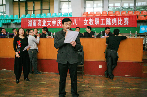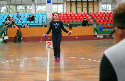 本网讯(校工会 谢岚)为庆祝“三八”国际劳动妇女节,3月7日下午,校工会在学校体育馆隆重举办了庆“三八”女教职工跳绳比赛。学校27个部门工会共81名女教职工参加了此次比赛。各单位负责人和教职工400多人来到现场观看比赛,为参赛队员加油助威。经过紧张激烈的角逐,获得团体赛前八名的单位分别为图书馆、东方科技学院、经济学院、外国语学院、公管法学院、动医学院、政工、农学院。公管法学院的曾鑫以1分钟230个的好成绩获得个人冠军;东方科技学院的曹丹获得亚军;获得季军的是农学院的罗芬;并列第四名的是后勤服务集团胡艳芳、李洪林;并列第六名的分别是理学院的蒋莉,经济学院的郑璇、教育学院的吴瑛、图书馆的张畅。