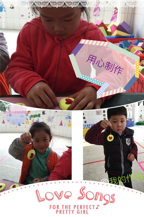 为了使这次活动更符合孩子的年龄特点和需求,活动前,老师精心策划,制订方案。节日前期就让孩子了解妈妈、奶奶、外婆的生日、爱好,帮助她们做一件家务事,让孩子们懂得细心与关爱;节日当天,中一班老师邀请了孩子们的妈妈、奶奶、外婆们来到幼儿园一同庆祝节日。中三班老师带领孩子们用彩泥制作了爱心。大一班老师教孩子们制作了节日贺卡。大二班老师带孩子们制作了彩泥戒指……孩子们用歌声,用手工,用肢体语言表达着对她们浓浓的爱、深深的情。