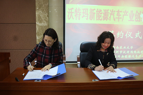 张立副校长与朱金玲女士签署“沃特玛新能源汽车产业创新联盟奖学金”协议