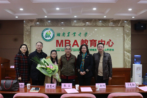 签约仪式结束后,深圳校友会名誉会长唐慧斌先生为同学们带来了名为“幸福生活从‘心’开始”的主题讲座。唐慧斌从“聪明的人待人接物都会做到勿以善小而不为,勿以恶小而为之,将幸福把握在自己手中。人的上半生,不要犹豫;人的下半生,不要后悔”等方面讲述了他对幸福的理解。兰勇院长为本次报告会做了总结,他指出,“沃特玛新能源汽车产业创新联盟奖学金”的设立既为商学院的发展注入了新动力,又为商学院学子的发展提供了更好的平台,希望同学们好好学习,不辜负校友、企业和学院对大家的期望,为商学院争得更多的荣誉。