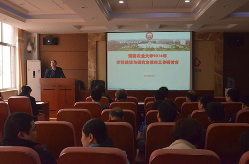 邹冬生就如何做好今年的学科建设与研究生教育工作强调,一是要转化观念;二是要做好顶层设计;三是要凝心聚力;四是要层层落实;五是学校各部门、各单位之间一定要优化机制、加强合作、集思广益、共同谋划好我校2016年湖南农业大学学科建设与研究生教育工作。