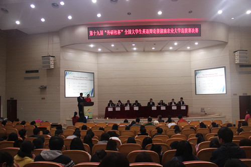 第十九届“外研社杯”大学生英语辩论赛湖南农业大学选拔赛决赛现场