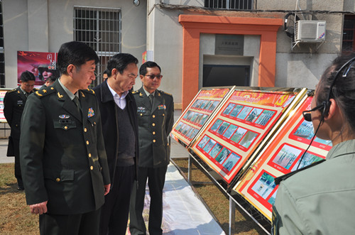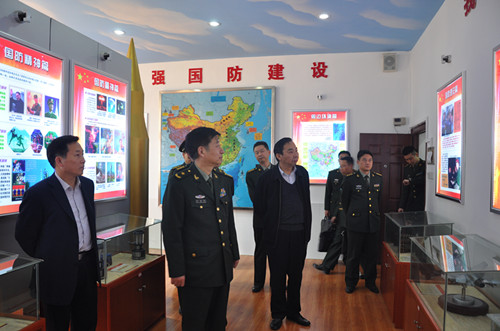 省军区副政委刘建新少将一行视察武装成果室内静态展示——国防教育展室