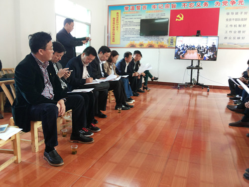 周清明书记一行听取新科村扶贫规划情况介绍 何纲跃 摄