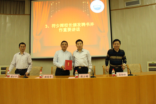 符少辉校长为蓝天集团董事长汤国华颁发客座教授聘书