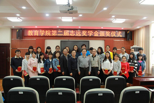 本网讯(教育学院 陶芸)4月14日下午,教育学院第二届志远奖学金颁奖仪式在十教北417举行。人事处处长毛祥成,教育学院院长周先进、党委书记刘明良出席。教育学院党委副书记刘庆华主持仪式。