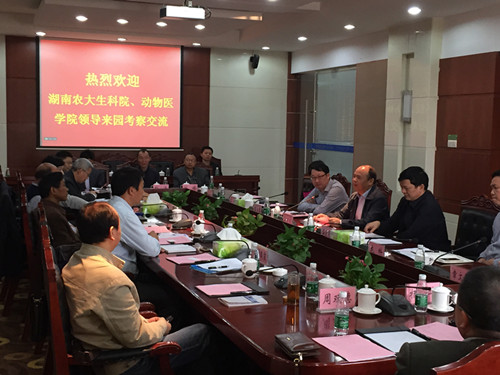 多年来,我校与浏阳经开区保持良好的合作关系,我校孵化的企业如农大药业、美可达、坛坛香均在该区生根落地,并且发展势头强劲。我校生物科学技术学院、动物科学技术学院、食品科学技术学院与园区的产业契合度高,存在良好的合作基础和合作前景。双方一致认为,应成立专门的机构对我校科研院所的人才、技术和成果优势与园区企业的资本、产业和市场优势进行整合,并就生物科学技术学院承办国家人社部生物技术人才高级研修班培训计划的落实进行部署。