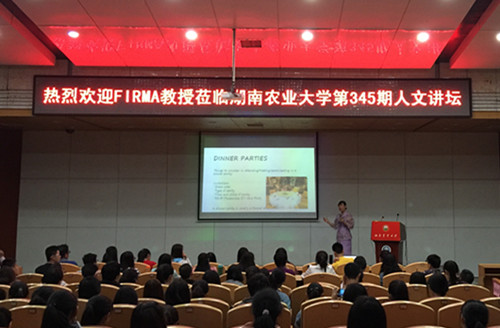 FIRMA CACCAM VIRAY教授于5月19日晚在八教学海厅主讲“跨文化礼仪/行为”,详细介绍了用餐礼仪,并从着装、肢体语言等方面讲解了公共演讲、面谈等多种场合下的行为礼仪。为加强学生对菲律宾的了解,指导我校交换留学生更好地适应赴菲后的学习和生活,FIRMA CACCAM VIRAY教授于5月24日下午在国际交流与合作处一楼会议室作了一场题为“中国学生在菲律宾的生活和挑战”的讲座,介绍了菲律宾以及菲律宾中吕宋国立大学,指导学生应对国外求学面临的挑战。