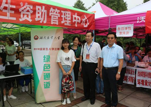 学校党委书记周清明,副校长陈岳堂、张立亲临“绿色通道”办理现场,慰问贫困学子。周清明书记与前来办理“绿色通道”的学生亲切交谈,详细了解学生家庭经济情况,并对工作人员强调:“要确保贫困学子顺利入学,不让任何一个贫困学子因缴不起学费而失学。”