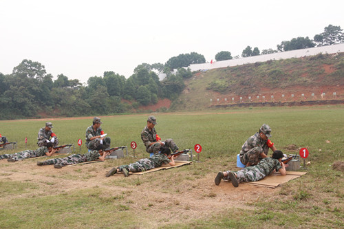 上午7点,各学院陆续抵达靶场待命。由于前期武装部已经组织新生在校内进行了枪械知识讲解和瞄准训练,在教官引导下,同学们熟练地卧倒、据枪、瞄准、击发,动作一气呵成、枪声此起彼伏。射击进行中,张立副校长、学工部戴荣四部长等到现场指导。到下午2时,完成全部300组射击任务,现场秩序井然,组织有力,衔接紧凑。