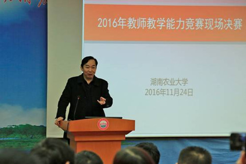 教师教学能力竞赛是学校继青年教师教学能手、讲课比赛后的又一项重要赛事。 2015年出台《湖南农业大学教师教学能力竞赛规程(试行)》(湘农大[2015]46号),2016年3月下达《关于开展2016年教师教学能力竞赛的通知》(湘农教发[2016]24号),启动了2016年学校教师教学能力竞赛工作,历时9个月,经过初赛、复赛和决赛三个环节,重点对教师的课堂教学效果、教案及教学反思进行评价,最终从300余位参赛教师中评选出一等奖获奖教师14人。
