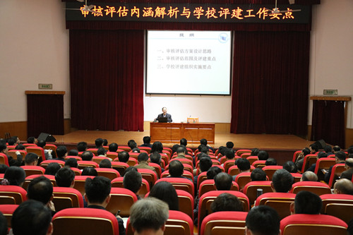 本网讯(教务处 肖芬 张芬)为了进一步扎实推进学校审核评估自评自建工作,进一步提高本科教学质量和办学水平,4月6日上午,我校邀请教育部高等教育教学评估中心原副主任李志宏研究员来校作《审核评估内涵解析与学校评建工作要点》专题报告。全体在校校领导、全校副处级以上干部、教学基层组织负责人、教务秘书、教务处副科级以上管理人员、兄弟院校相关管理人员等320余人聆听了报告。报告会由符少辉校长主持。