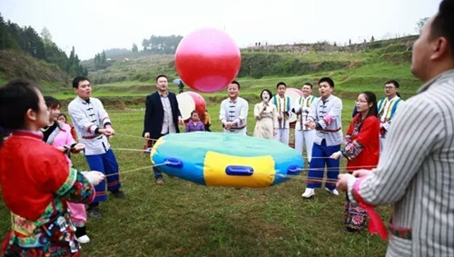 新科村“苗家边边场”桃花节在欢快的鼓声中开幕,“桃花树下绘桃花、桃花树下结良缘”,20名单身男女集聚桃花园,在烂漫桃林中约会有缘人。“赶边边场”是湘西苗家青年男女求爱的一种方式,他们分为两组,每组5男5女,两组进行猪八戒背媳妇、夹乒乒球、众星捧月趣味比赛活动。“赶边边场”活动进行了约2小时,大家高兴而来,满意而归,更多地是期待来年的桃花节,期待新科村欣欣向荣,像花儿一样绽放。