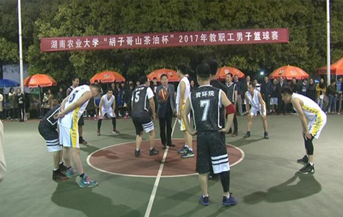本网讯(校工会 刘娟)4月11日晚,学校灯光篮球场掌声、喝彩声此起彼伏,热闹非凡。由校工会主办、体育艺术学院协办的“胡子哥山茶油杯”教职工男子篮球赛隆重开幕。