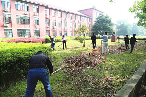 此次活动安排在一教前坪和思源馆后坪沿线,因近期刮风下雨,落叶较多,大家相互协作,有的用竹耙、扫把清扫,有的用铁铲装斗装袋,因工具不够,李觅路书记带头用手捡捧落叶,无言的示范让大家深受感染,许多同志脱下外套,撸起衣袖,干得满头大汗。沿途经过的老同志驻足向李觅路书记打招呼,称赞后勤服务集团这个活动形式很好,提出不但要让党员参加,还要让广大教师和学生体验义务劳动,尤其是要把义务劳动列为大学生教育的重要内容。