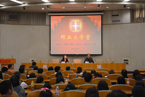 本网讯(学工部 达选琴 郭舒心 王洋)4月13日下午,修业大学堂第三十一期在生科楼国际会议厅举行。我校体艺学院李骅教授以“内涵建设上层次,开拓创新谋发展——体育事业值得我倾其一生”为题,讲述了我校体育事业的发展。校学术委员会副主任委员周孟亮教授担任主持人。