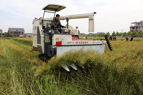 油菜两段收获机械展示 何纲跃 摄
