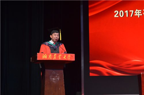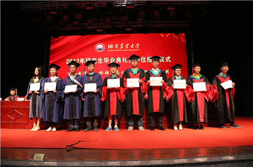 本网讯(研究生院 李青清)6月26日上午,湖南农业大学2017年研究生毕业典礼暨学位授予仪式在学校大礼堂隆重举行。