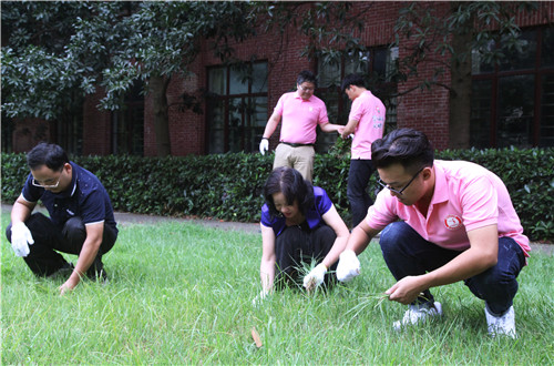 张立副校长和师生一起进行除草劳作