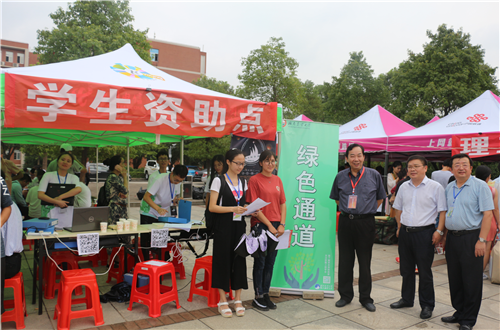 学校领导高度重视我校贫困生入学情况,校党委书记周清明,副校长陈岳堂、张立等校领导亲临“绿色通道”办理现场,与前来咨询的学生亲切交谈,仔细询问并了解学生的家庭经济情况,向他们表达学校对于贫困学子的关心与慰问,并勉励新生们刻苦学习,实现梦想,让所有在场新生都亲身感受到了学校领导的亲切关怀!