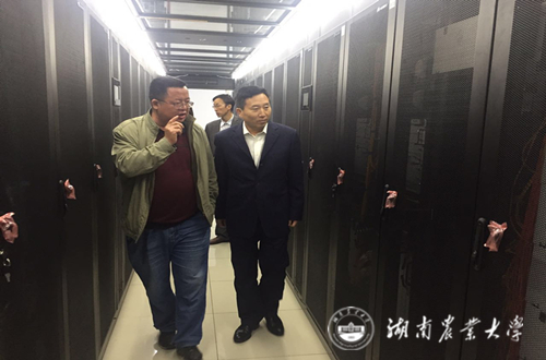 本网讯(信息化建设与管理中心 曹晖 周茁)2017年10月12日下午,校长符少辉、党政办周跃斌主任一行来第六教学楼信息中心检查网络安全和调研学校信息化建设工作。