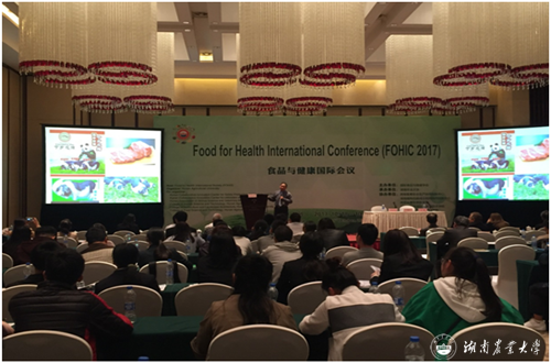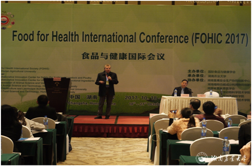 会上,邀请了国际食品与健康学会主席、日本鹿儿岛大学侯德兴教授讲话。侯教授介绍了学会宗旨及其国际地位,并对湖南农业大学承办此次会议所做出的努力和热情接待表示感谢。本次大会围绕“食品与健康”为主题,通过国内外知名专家专题讲座、学者口头或海报发表等交流方式,就全球食品与健康的最新科研进展、技术前沿、热点及难点问题进行深度探讨。